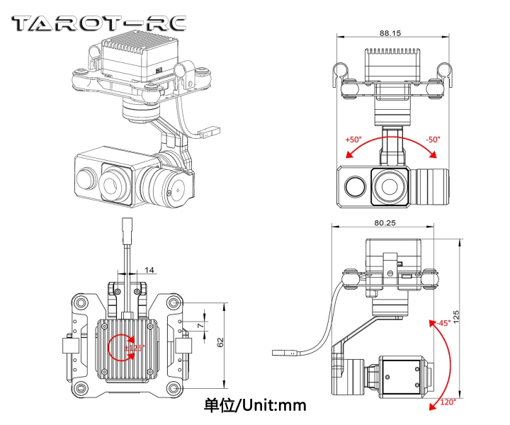 | Tarot 三軸云臺(tái)/384熱成像/雙光云臺(tái)/網(wǎng)絡(luò)輸出 TL3T27 |