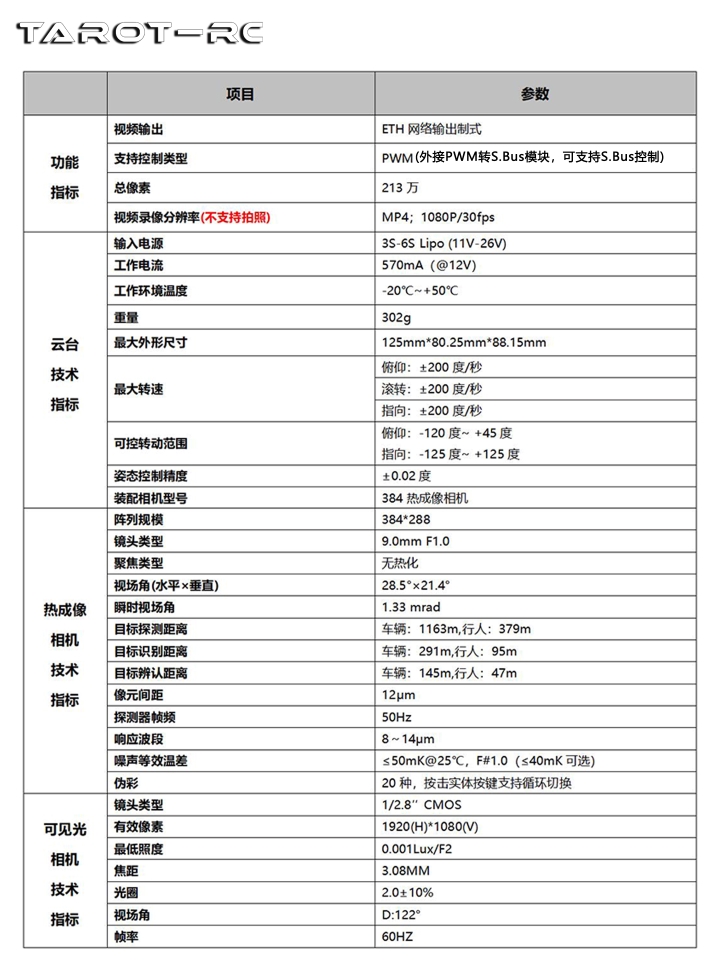 產(chǎn)品名稱:Tarot 三軸云臺(tái)/384熱成像/雙光云臺(tái)/網(wǎng)絡(luò)輸出 TL3T27
