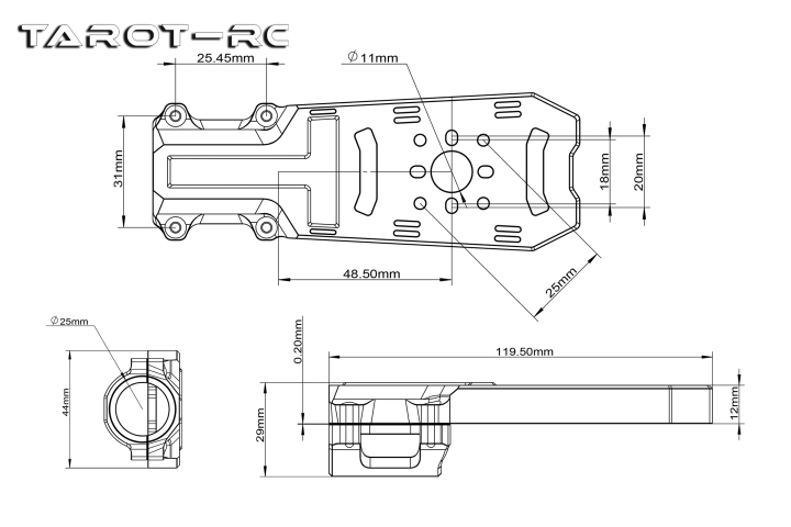 | 飛越/Tarot 電機(jī)座/超輕馬達(dá)座/鎂合金/一體壓鑄/25mm管徑 TL68B52 |