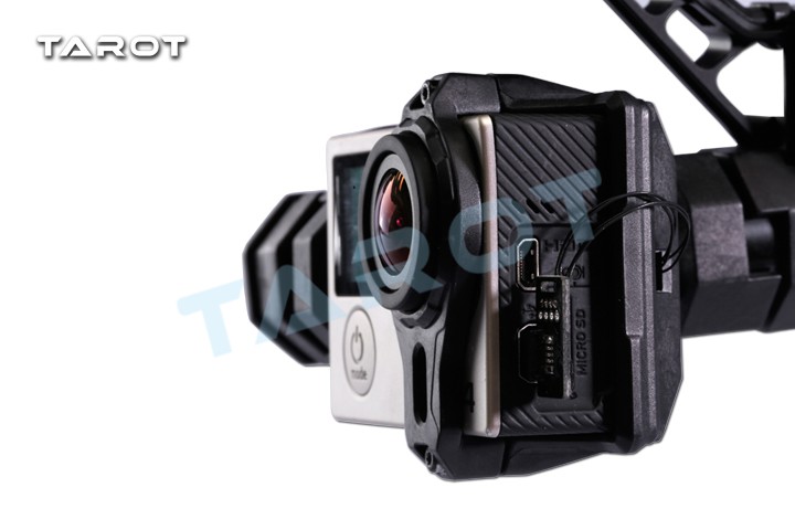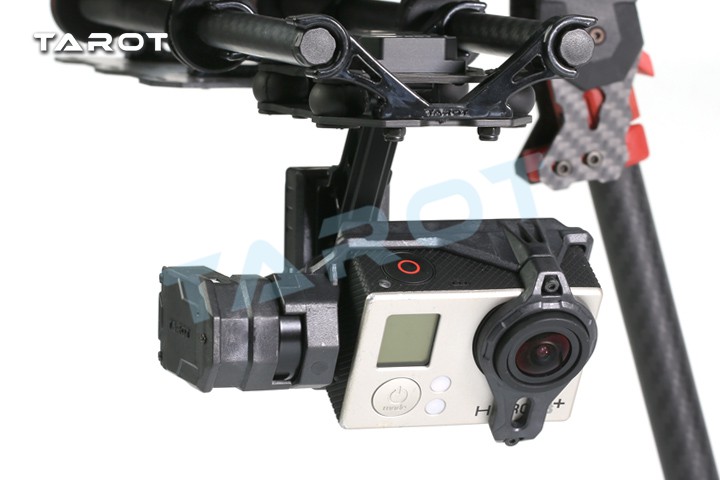 Tarot GOPRO T2-2D兩軸無刷云臺適用于GOPRO4/GOpro3+/Gopro3運動相機或其它尺寸接近的運動攝像機。是一款高精度、輕量化三軸機載云臺,完美適配多旋翼飛行器、固定翼、直升機等載體使用。