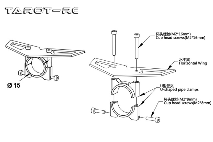| Tarot X3直升機(jī)/金屬水平翼固定座/U型座/銀 TL3X009 |