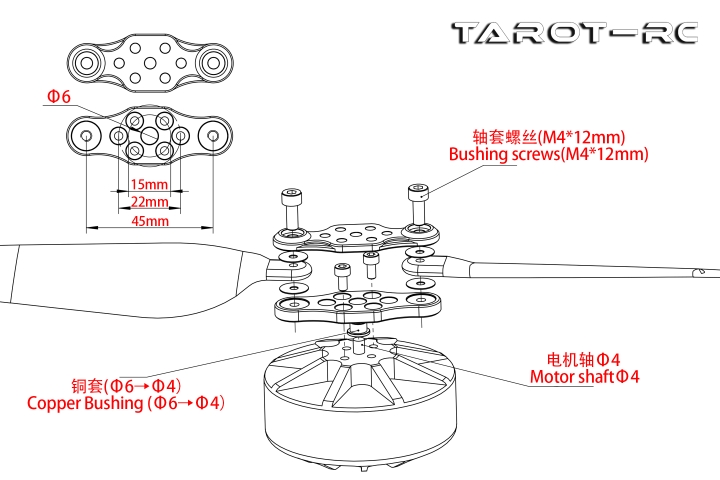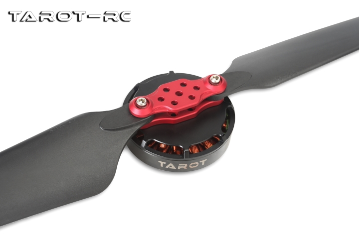 Tarot最新出品的新款折疊槳夾座,采用6061T6鋁合金全CNC加工,適用于對稱螺絲孔中心距15mm/22mm的各款電機,配套一顆Φ6轉Φ4的銅套可方便于Φ6/Φ4的兩款電機軸安裝的相互轉換,此款金屬槳夾座安裝方便,配套各款折疊槳使用可使效率更高。
