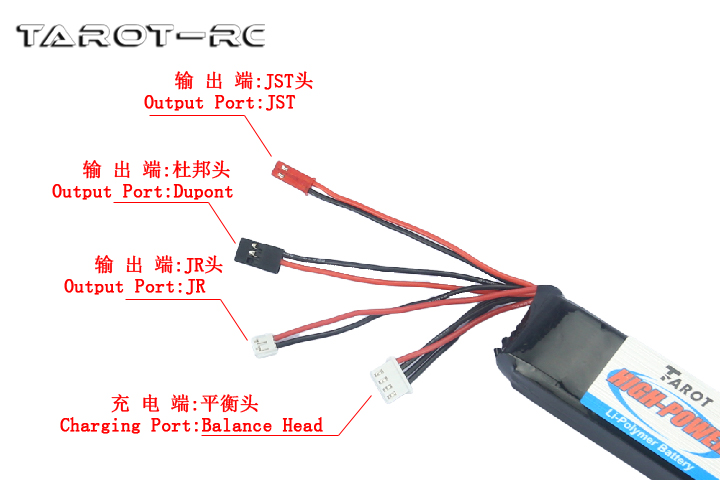 Tarot出廠的專為航模遙控器配置的鋰電池,2200mAh超大容量可保證您在航模飛行過程中遙控器的充沛電量。
