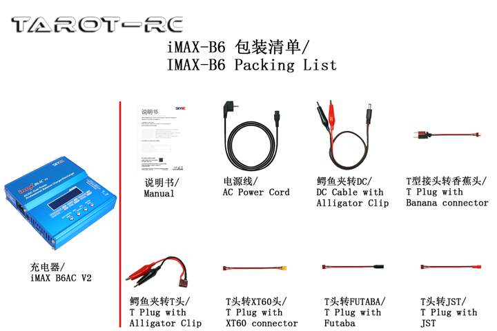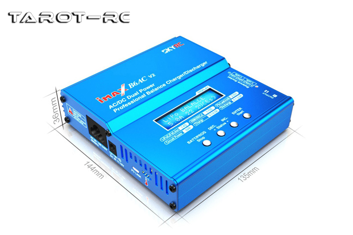 SKYRC公司出廠的iMAX B6AC V2是iMAX B6AC的升級版。相比IMAXB6AC,SKYRC B6AC V2在充電時更加精準和平穩(wěn),同時也新增了一些特征和功能。用戶可自行設定截止電壓,通過USB連接電腦進行可以對充電器進行操控和軟件升級。此外,用戶還可以檢測電池的電壓和電阻。因該產(chǎn)品具有自動充電電流限制﹑容量限制﹑溫度限制和充電時間的限制,所以相比IMAX B6AC V1更安全。