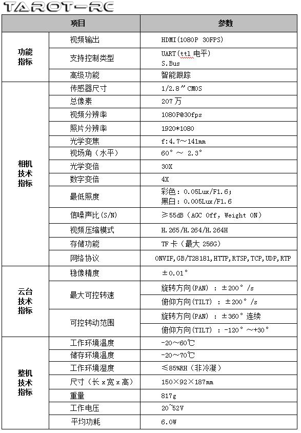 產(chǎn)品名稱:Tarot 30倍光學(xué)變焦云臺/200萬像素/網(wǎng)絡(luò)輸出/帶跟蹤 T30X-Net
