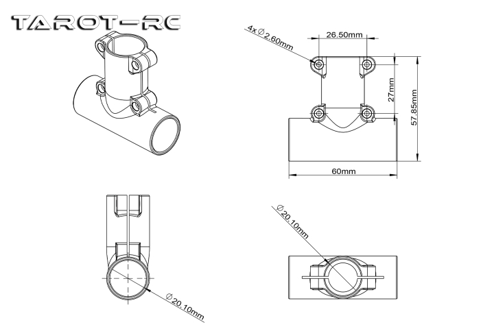 Tarot出品的T型三通,適用于20mm轉(zhuǎn)20mm的T型腳架轉(zhuǎn)接使用。升級版改良了T型橫管連接處過短導致不夠堅韌的弊端,整體采用進口復合材料注塑成型,十分堅固耐用。